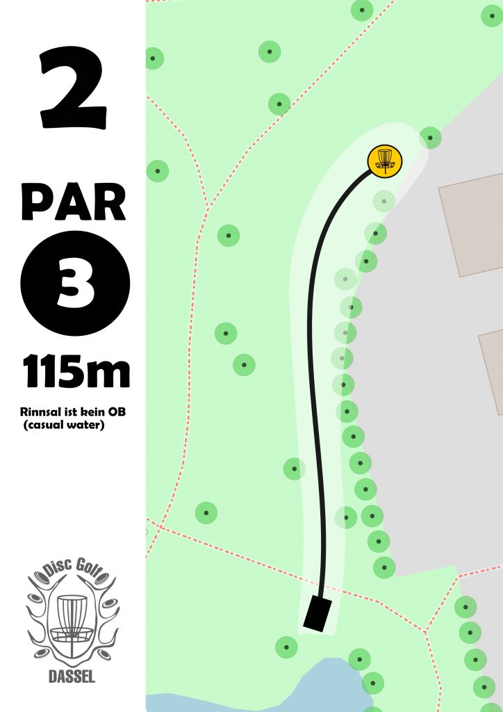 Die zweite Bahn wird entlang des kleinen Rinnsahls gespielt. Der Korb befindet sich hinter einem Gebüsch am Bach.