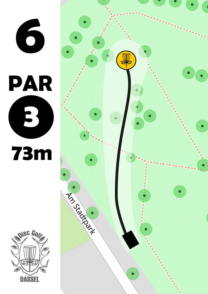 Bahn sechs startet parallel zur Straße an der Hecke und verläuft über den Weg bis zum Korb.