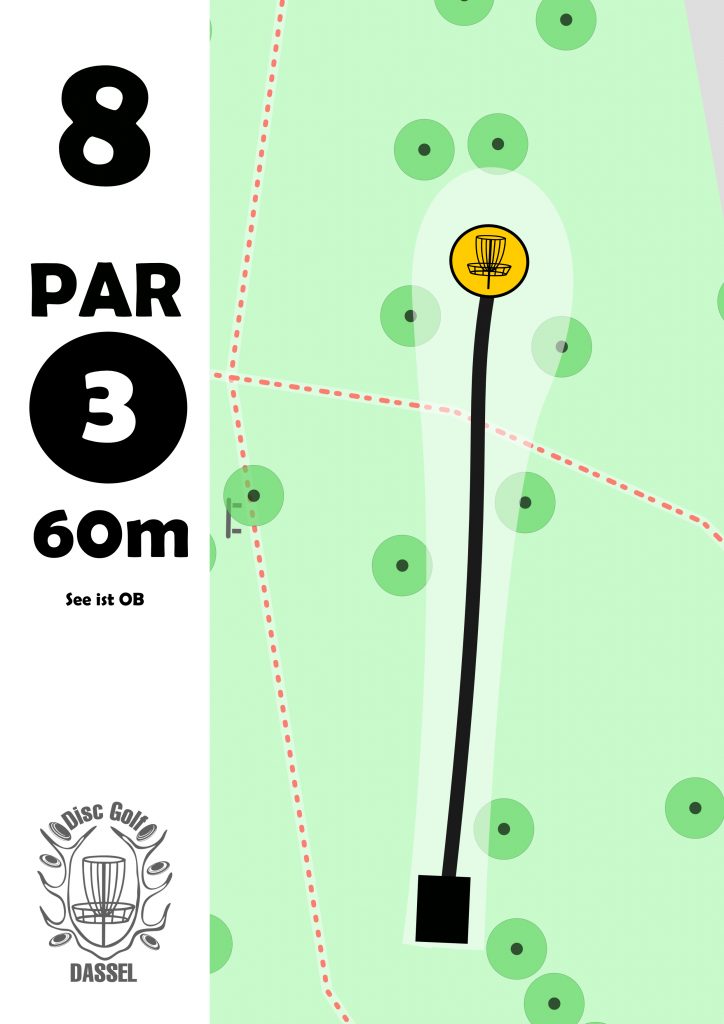 Bahn acht läuft über einen Weg. Bitte achtet darauf, dass keine Passanten wuren Wurfweg kreuzen.